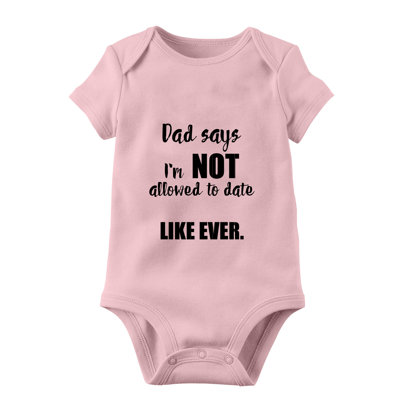 Βρεφικό φορμάκι “Dad says I’m not allowed to date..like ever!” με στάμπα βυνιλίου. Σύνθεση: 95% Βαμβάκι – Cotton // 5% Ελαστάν – Elastan