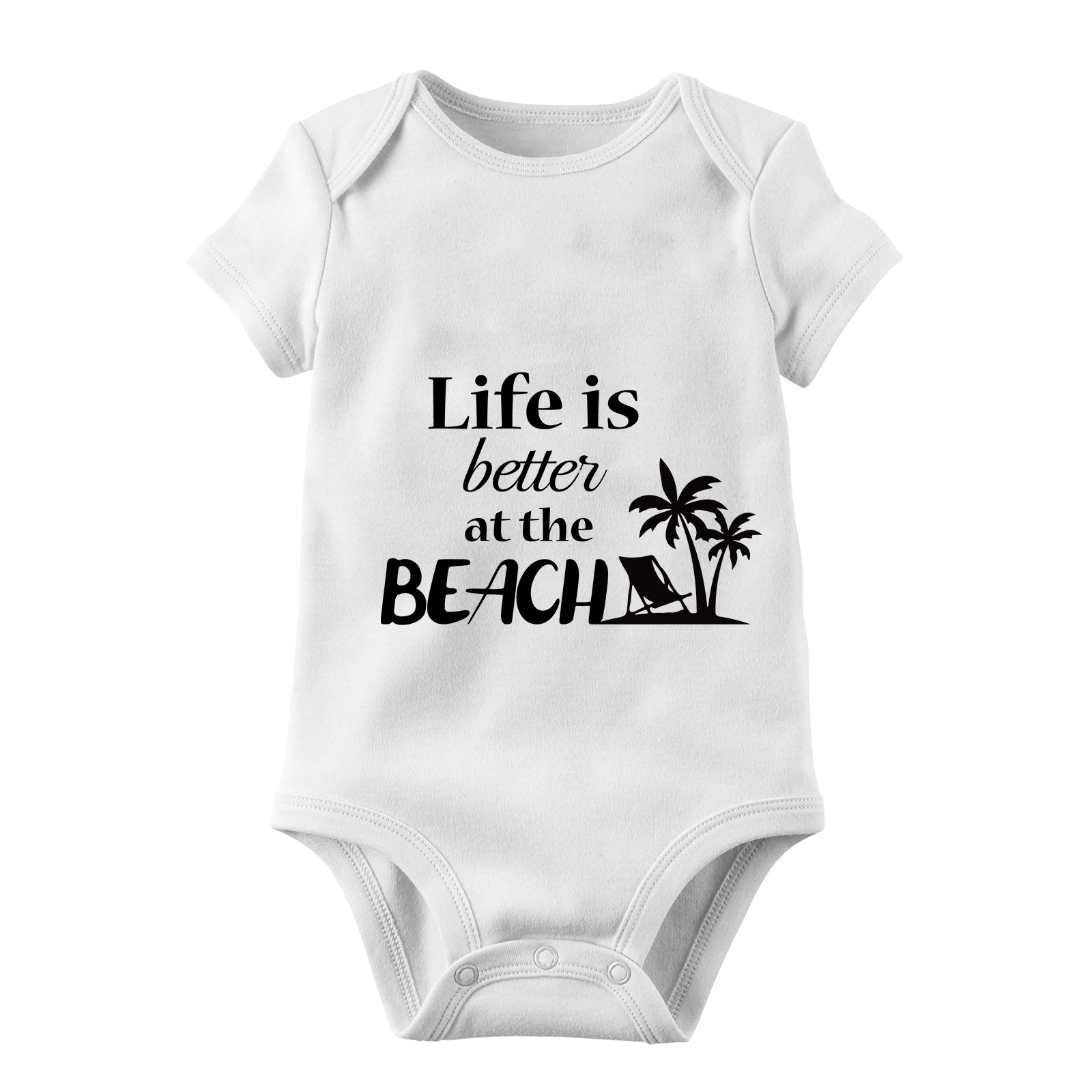 Βρεφικό φορμάκι ” Life is better at the beach”  με στάμπα βυνιλίου. Σύνθεση: 95% Βαμβάκι – Cotton // 5% Ελαστάν – Elastan