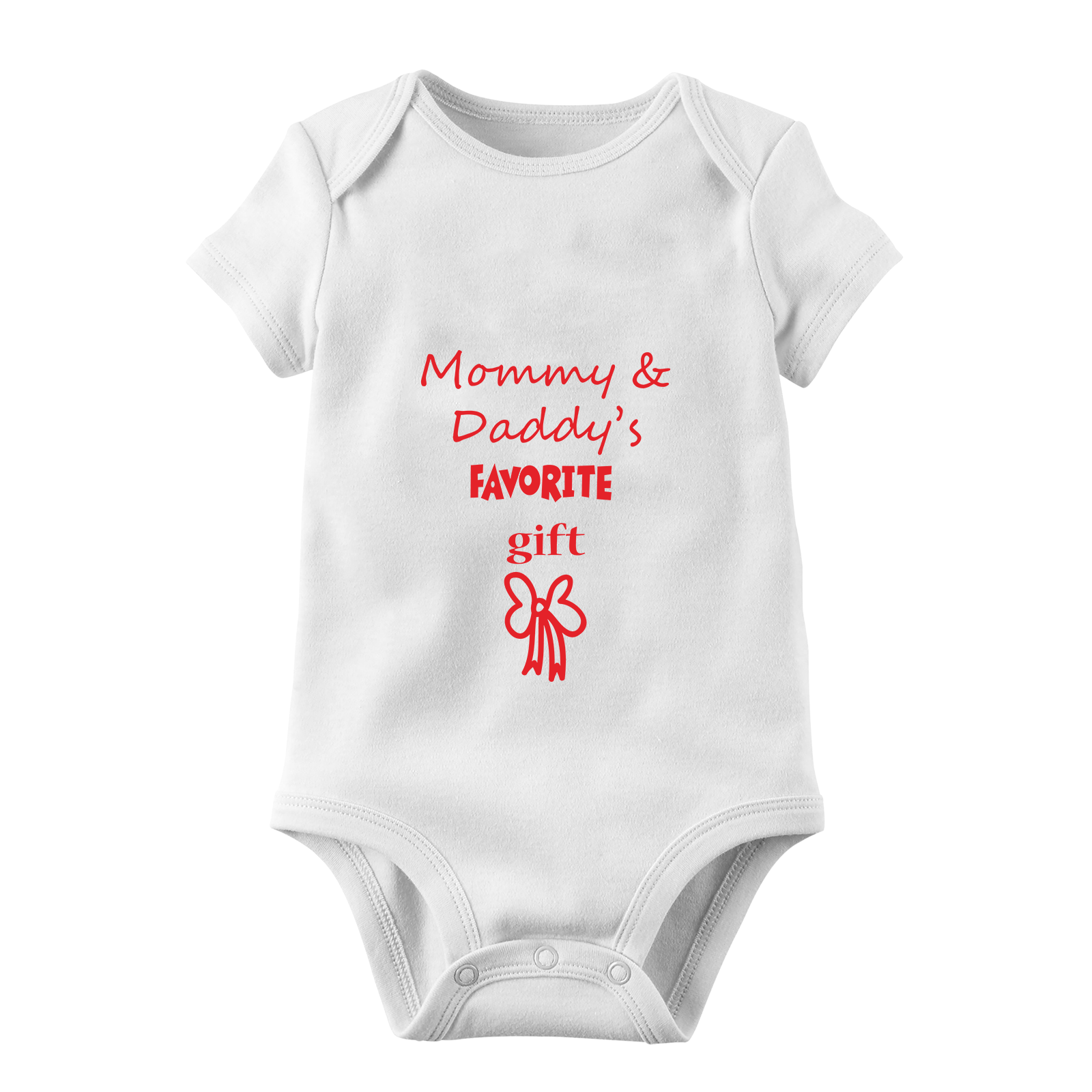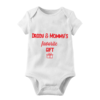 Βρεφικό χριστουγεννιάτικο φορμάκι “Mommy & Daddy’s favorite gift” με στάμπα βυνιλίου. Σύνθεση: 95% Βαμβάκι – Cotton // 5% Ελαστάν – Elastan