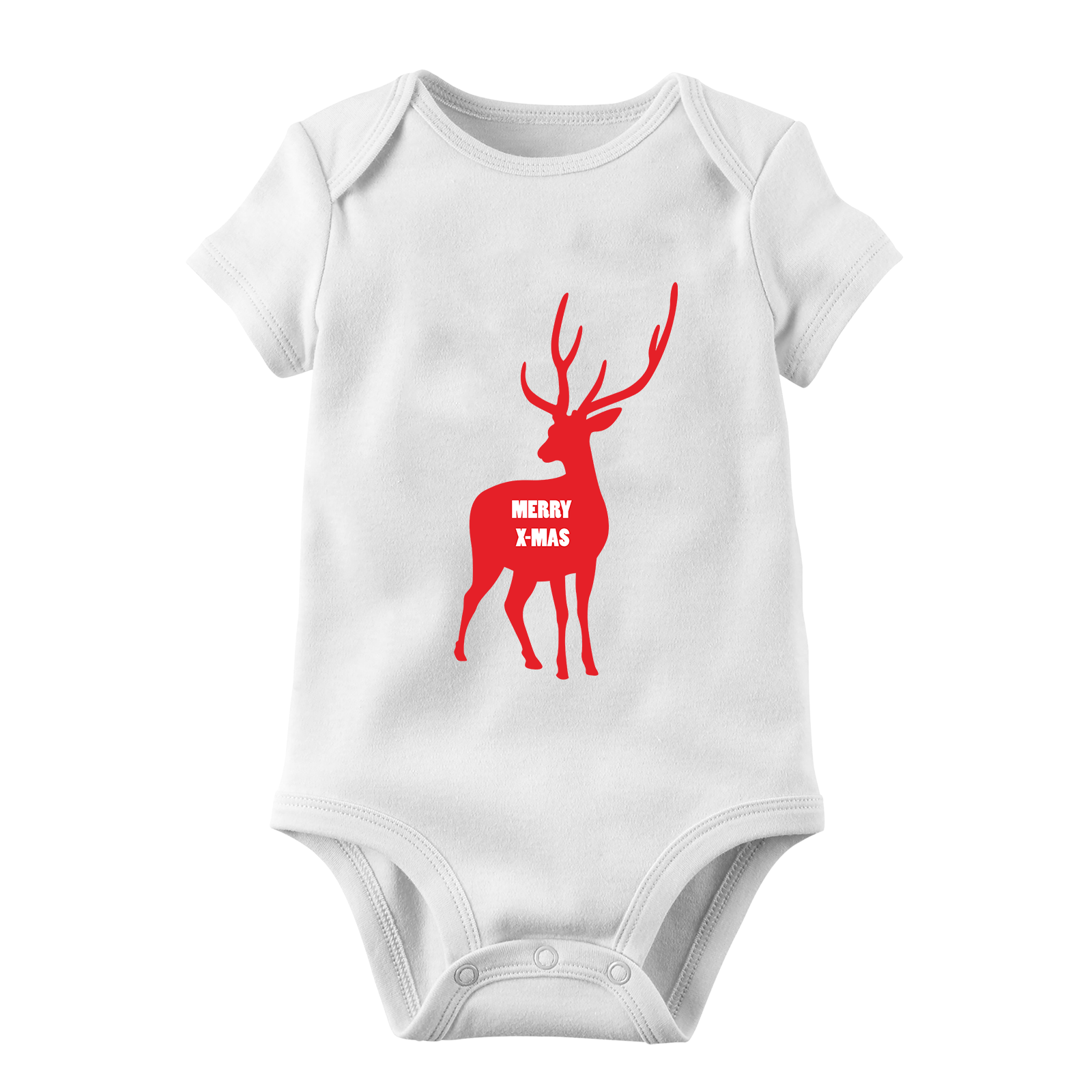 Βρεφικό χριστουγεννιάτικο φορμάκι “Merry X-mas” με στάμπα βυνιλίου. Σύνθεση: 95% Βαμβάκι – Cotton // 5% Ελαστάν – Elastan