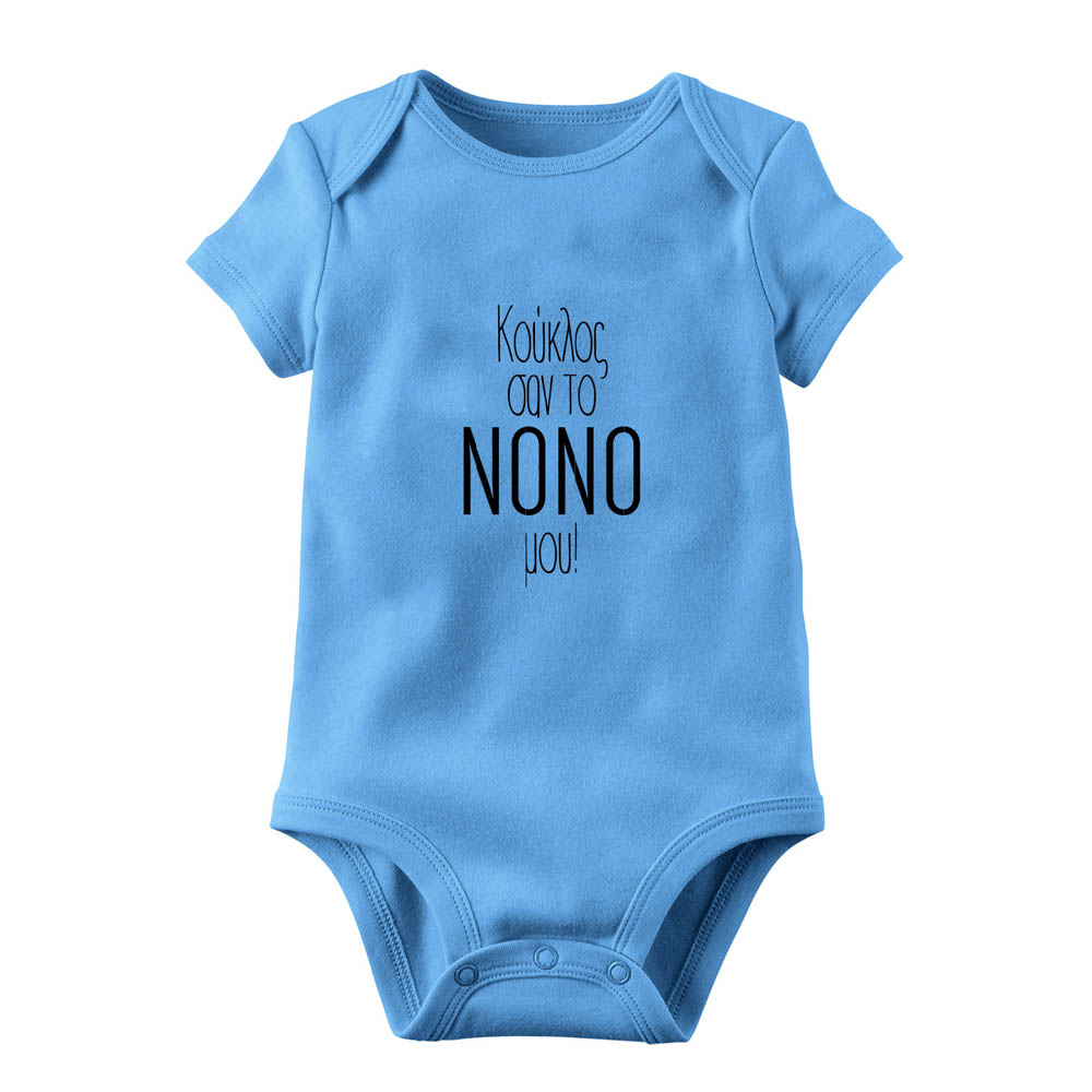 Βρεφικό φορμάκι “Κούκλος σαν το νονό μου” με στάμπα βυνιλίου. Σύνθεση: 95% Βαμβάκι – Cotton // 5% Ελαστάν – Elastan